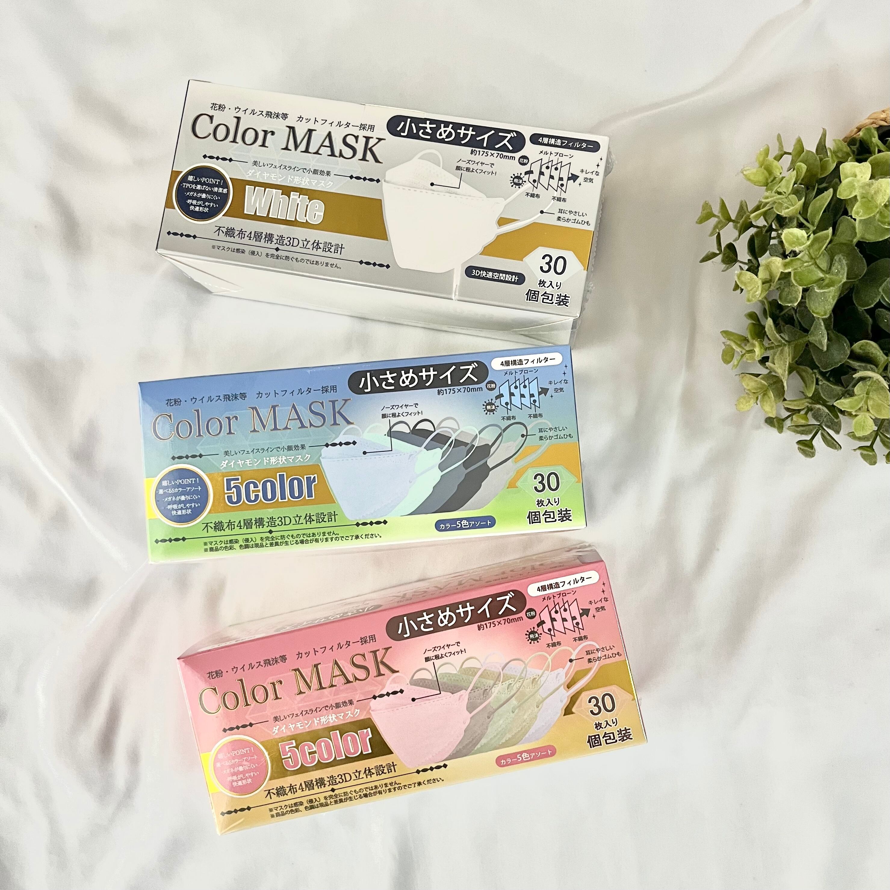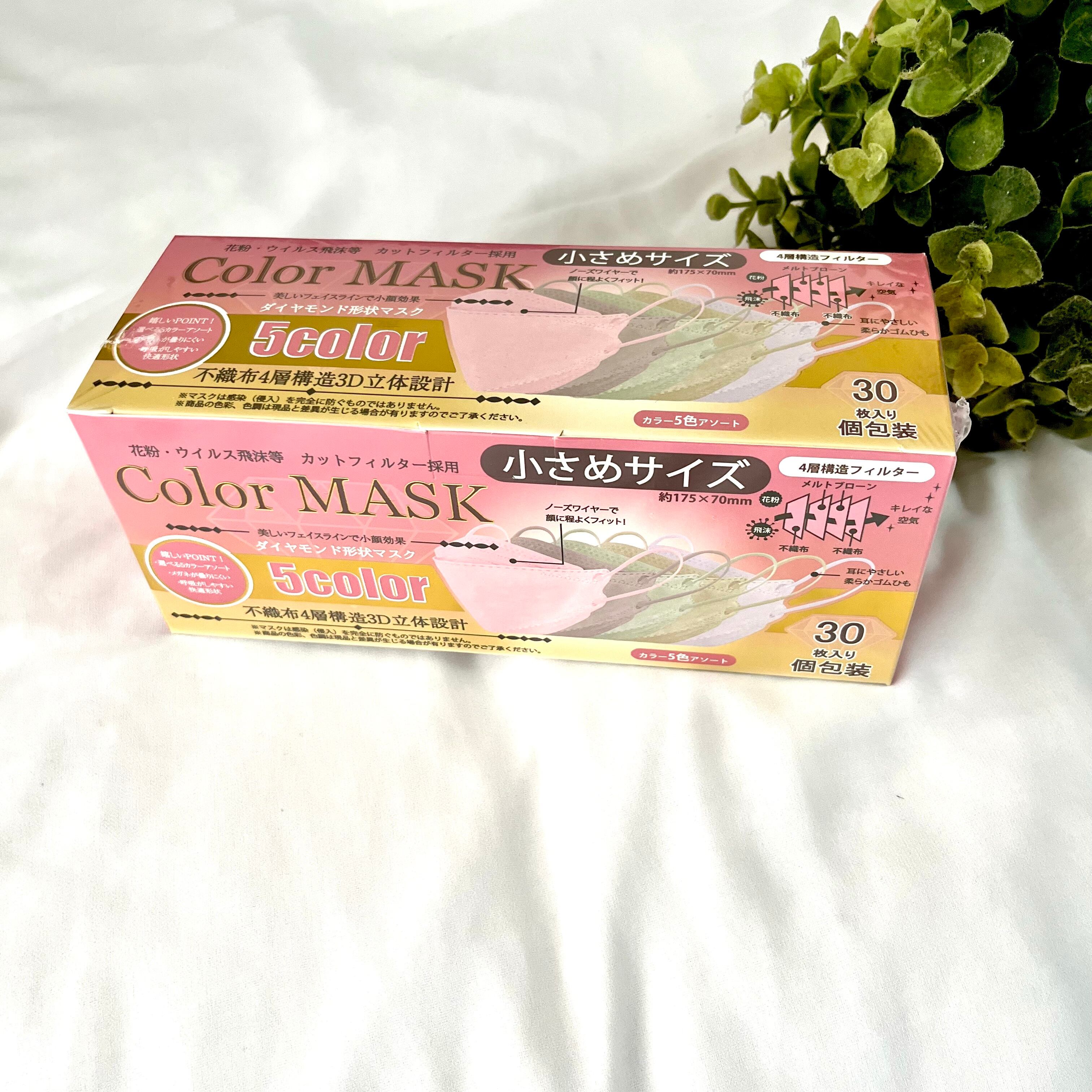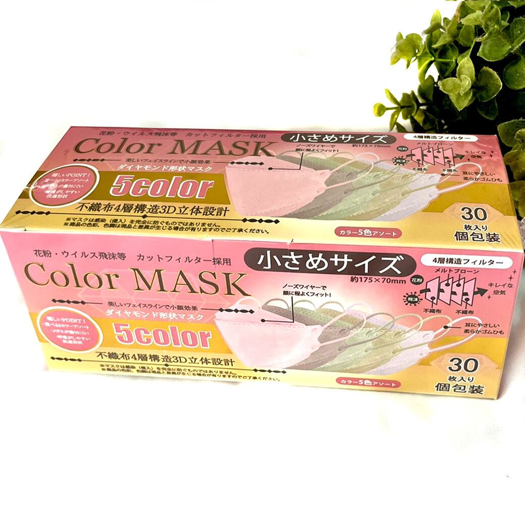 キッズサイズ女児不織布4層構造3D立体5カラーマスク30枚入り