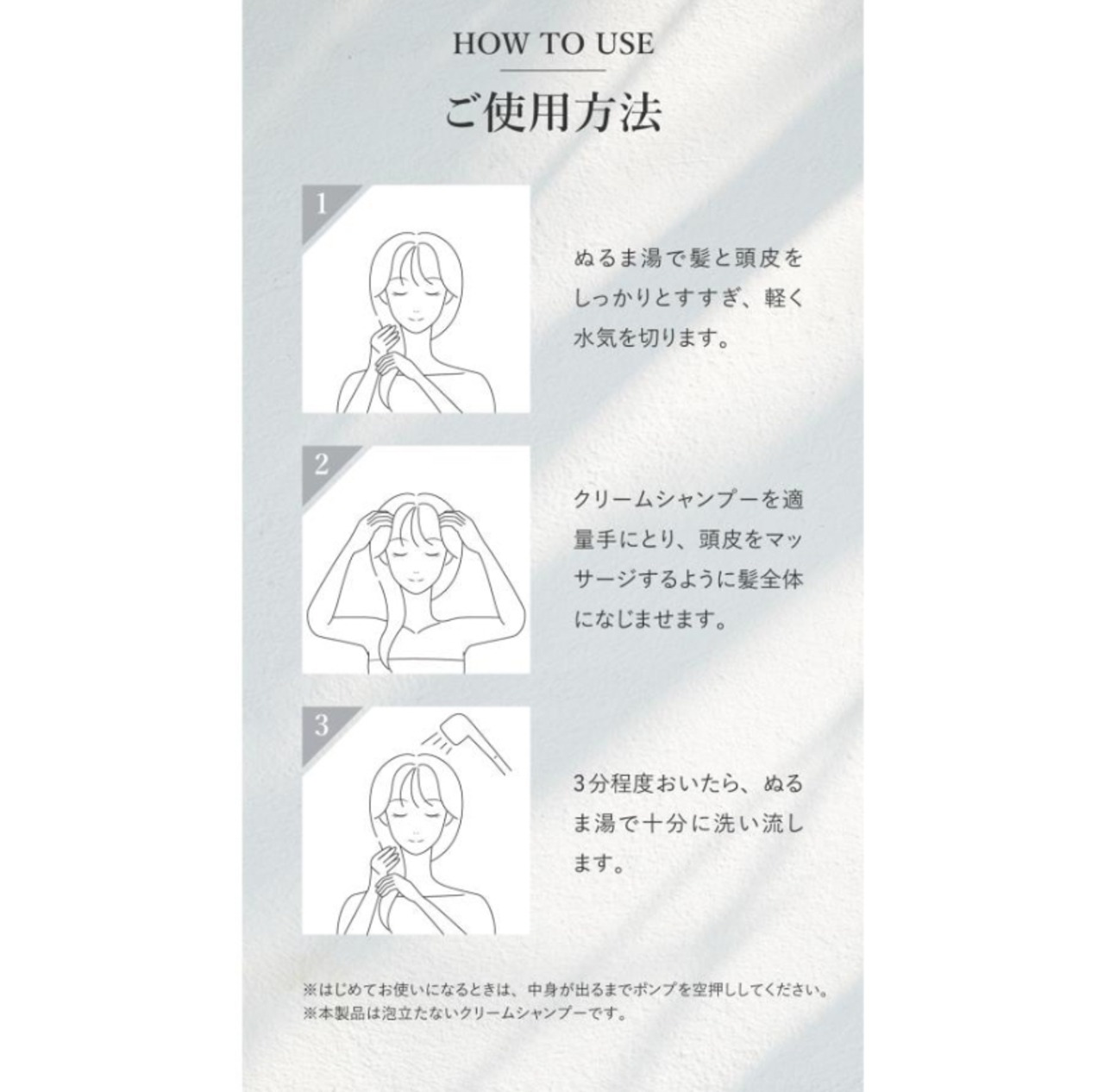 また、クリーム状のテクスチャーでしっとりとした洗い上がりを実現し、髪や地肌に潤いを与えます。